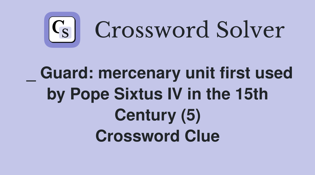Guard: mercenary unit first used by Pope Sixtus IV in the 15th