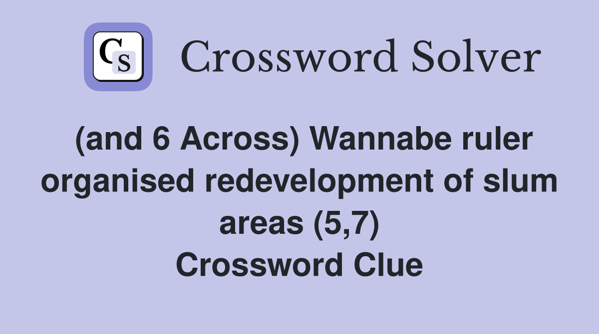 (and 6 Across) Wannabe ruler organised redevelopment of slum areas (5 7