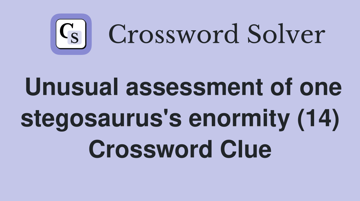 Unusual assessment of one stegosaurus s enormity (14) Crossword Clue