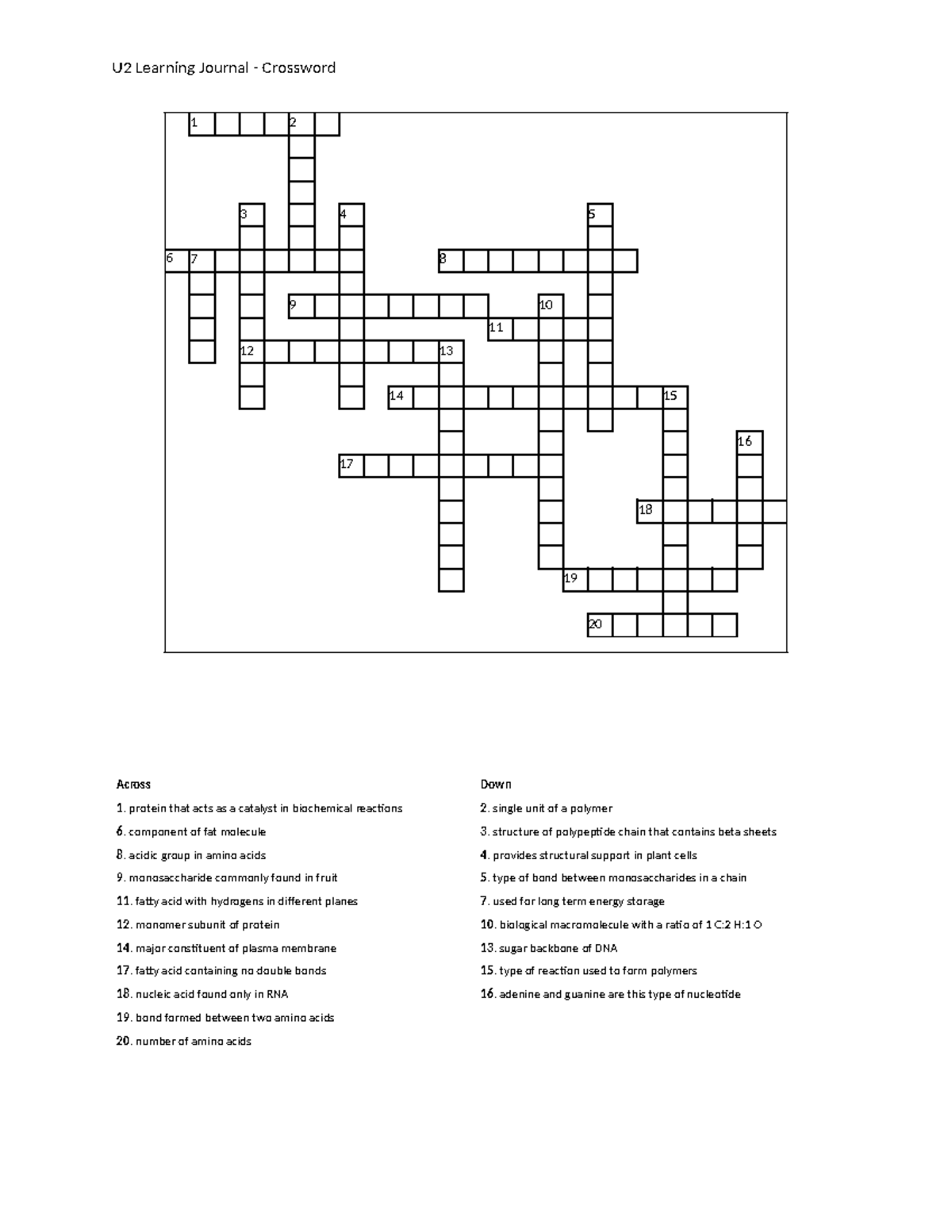 U2 LJ Crossword unit 2 cross word puzzle U2 Learning Journal Part
