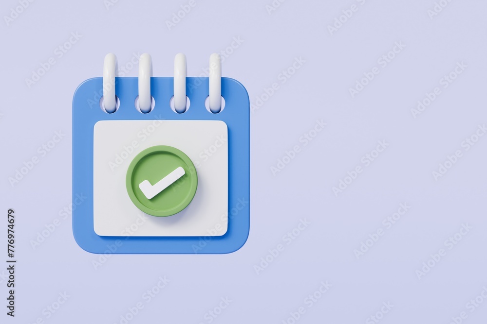 3d Calendar with checkmark or checklist icon Minimal cartoon blue