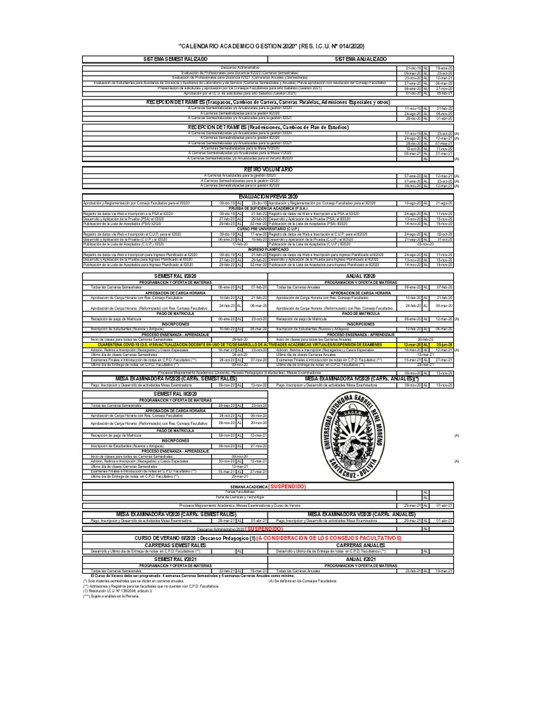 Calendario Academico ICU UAGRM PDF Descargar gratis PDF Antígeno
