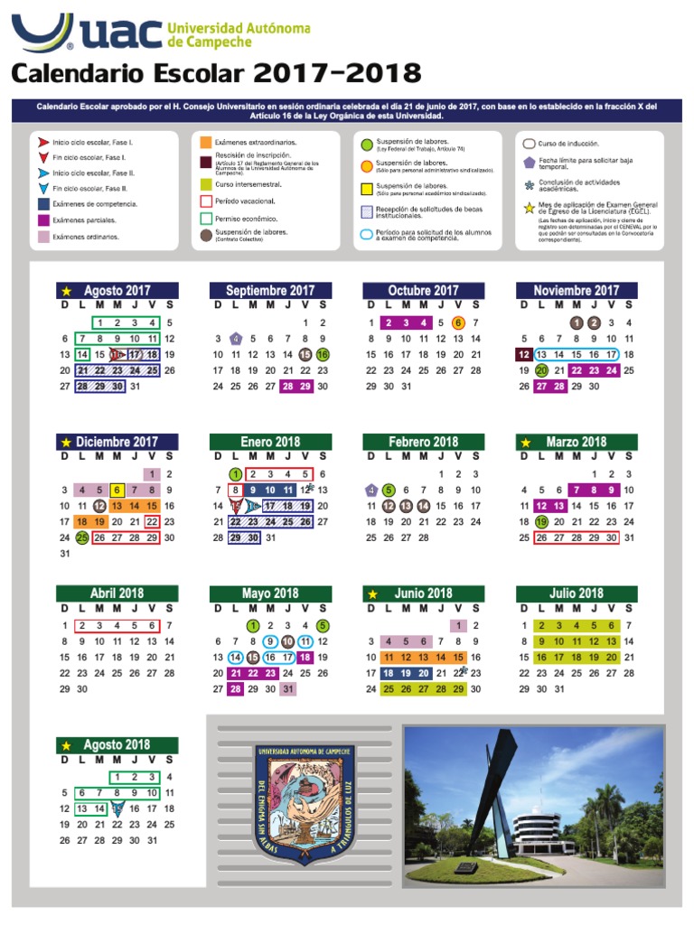 Calendario Escolar 2017 2018 UAC PDF Calendario