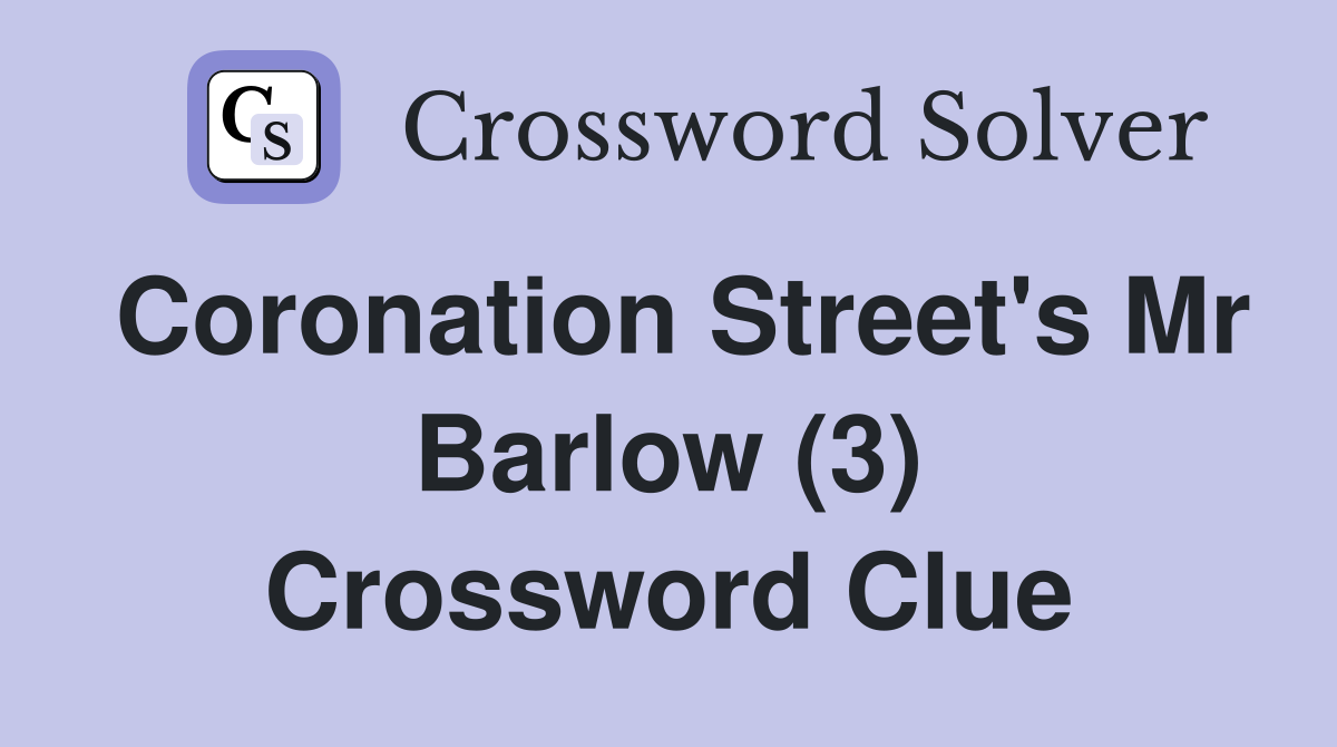 Coronation Street #39 s Mr Barlow (3) Crossword Clue Answers Crossword