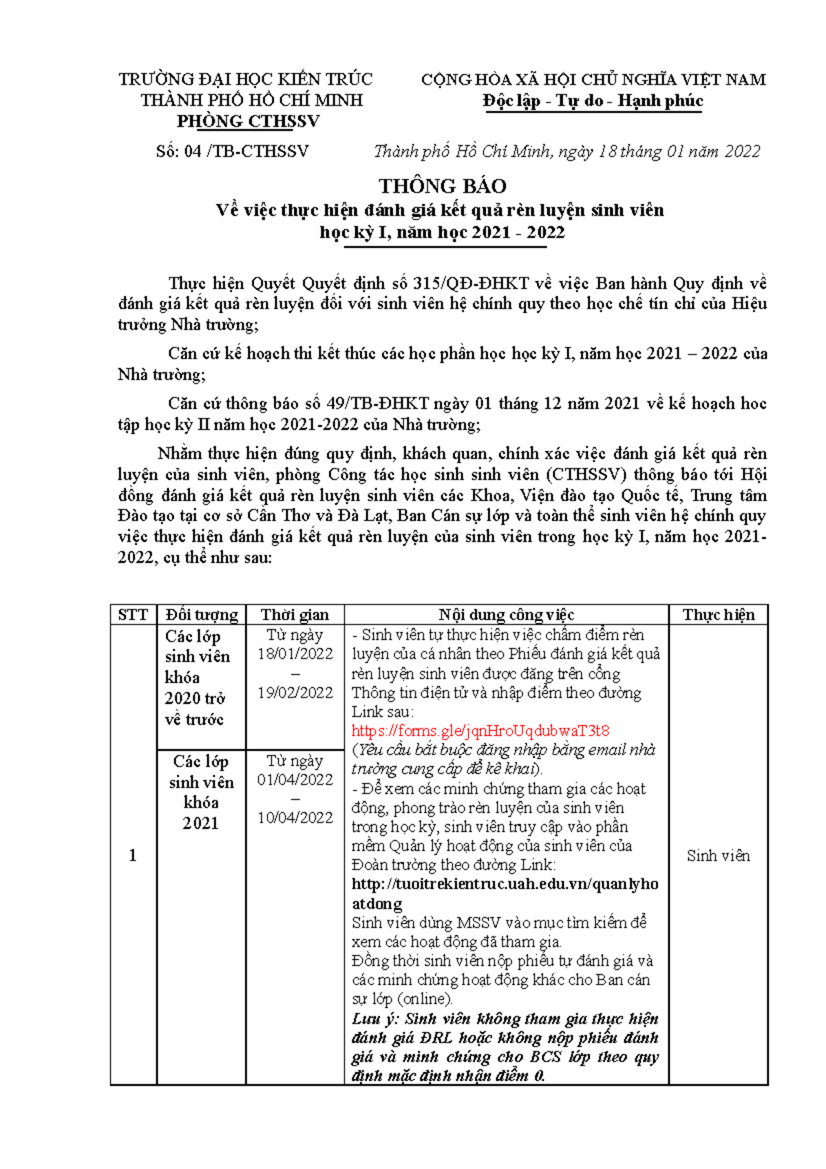 BIEU MẪU THUC HIEN DANH GIA KET QUA REN Luyen SINH VIEN HKI NH 2021