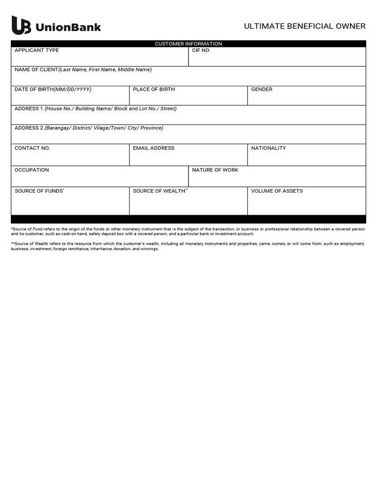 ULTIMATE BENEFICIAL OWNER (UBO) Form PDF