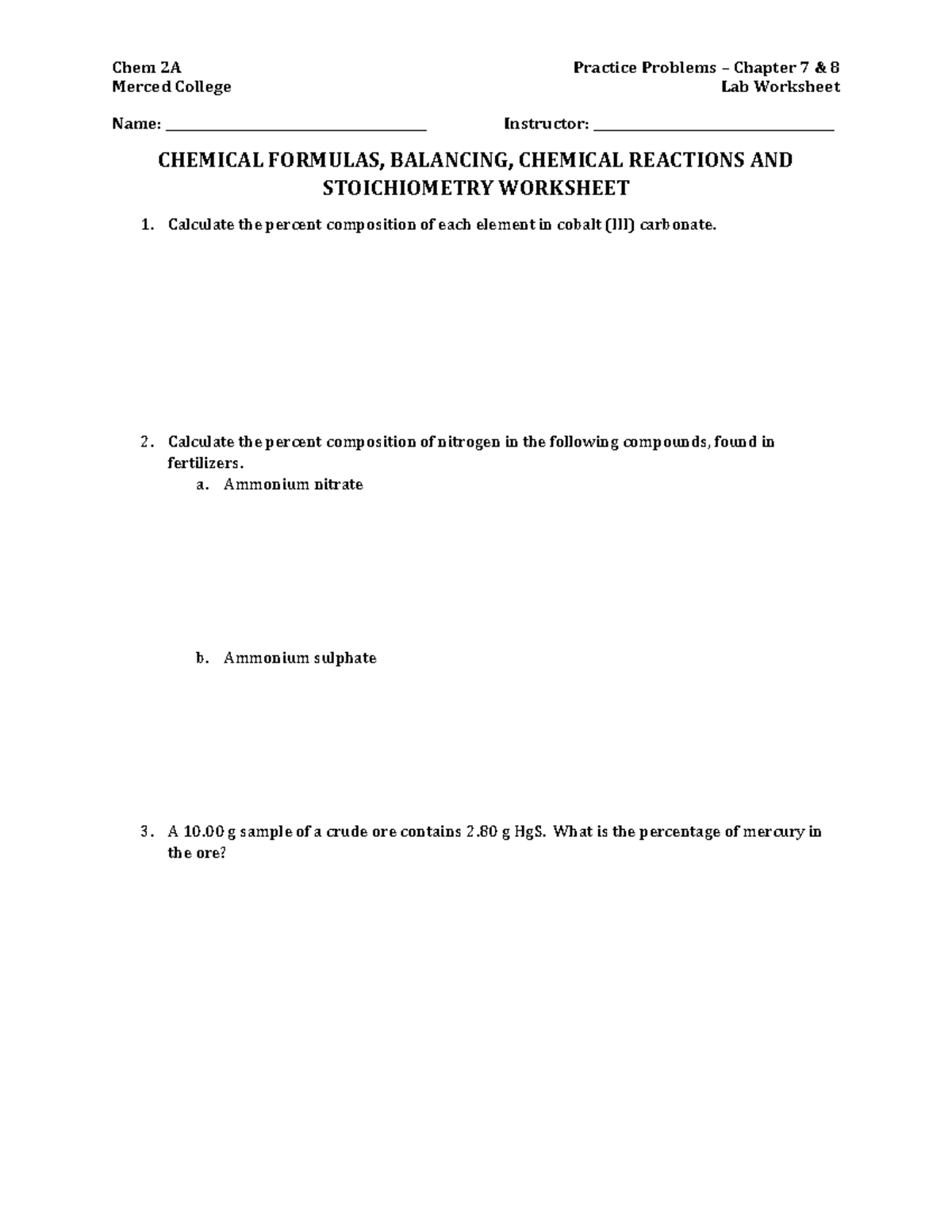 Lab 9 Chemical Equations Reactions and Stoichiometry Lab Worksheet