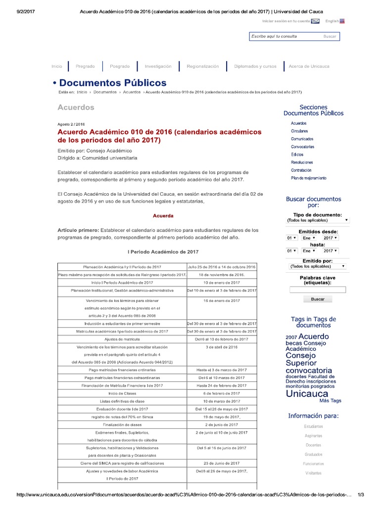Calendario Académico Unicauca PDF