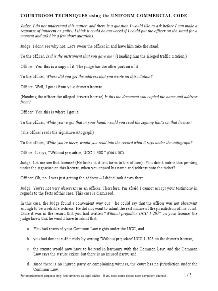UCC 1 308 Court Techniques PDF Common Law Admiralty Law