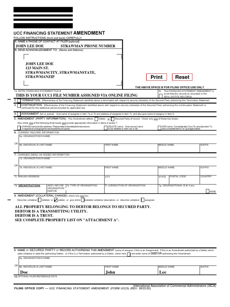 UCC 1 National Form EXAMPLE SAMPLE Assignment (Law) Trust Law