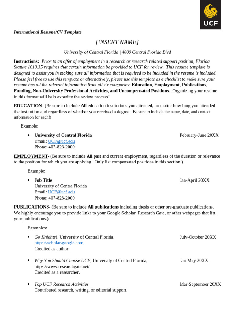 UCF International CV Resume Template Updated June 2022 2 PDF