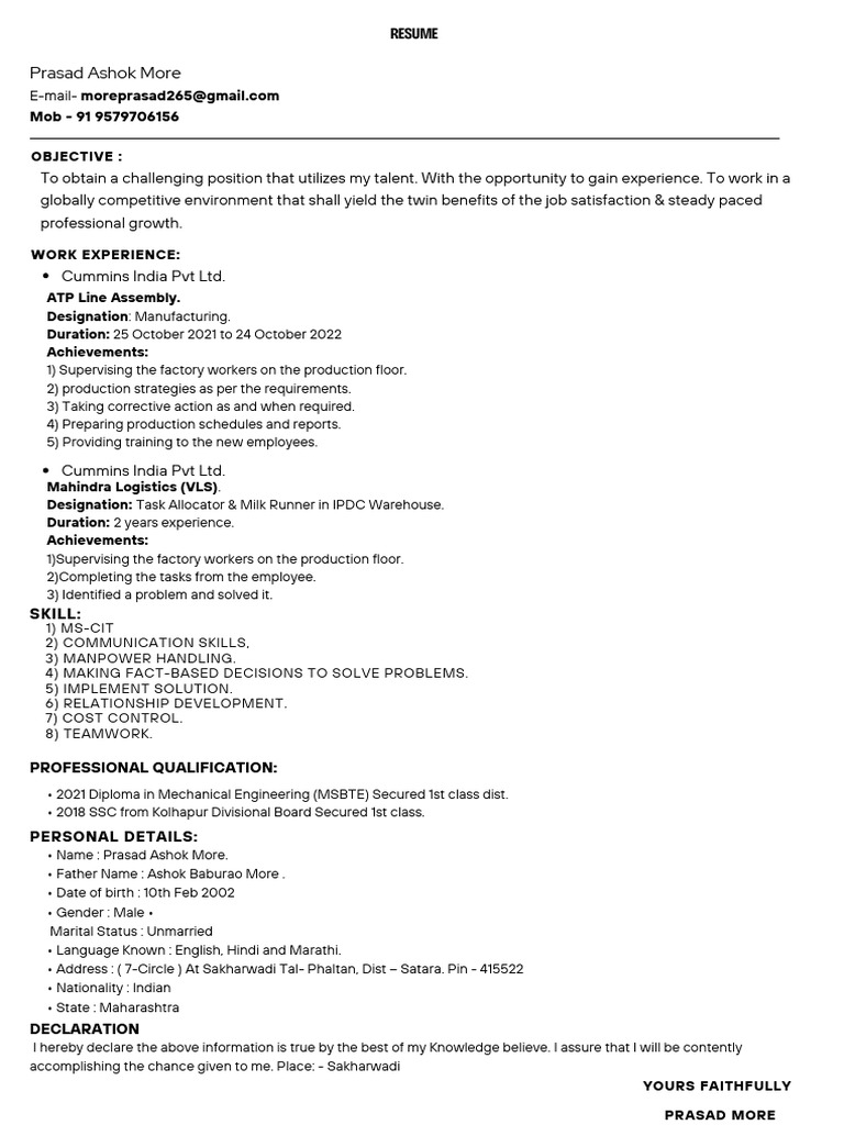 Resume Template Examples 70 Basic Resume Templates PDF DOC PSD