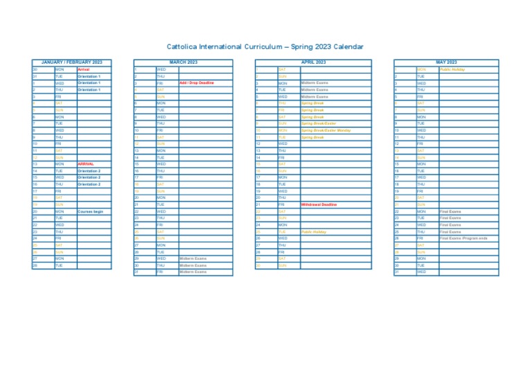 Ucscinternational UCSC International Curriculum Calendar Spring 2023