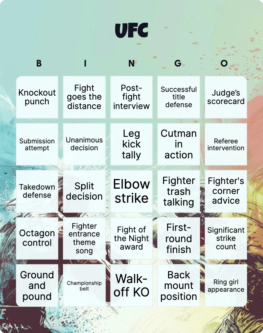 UFC Bingo: Printable Customizable Bingo Card Creator