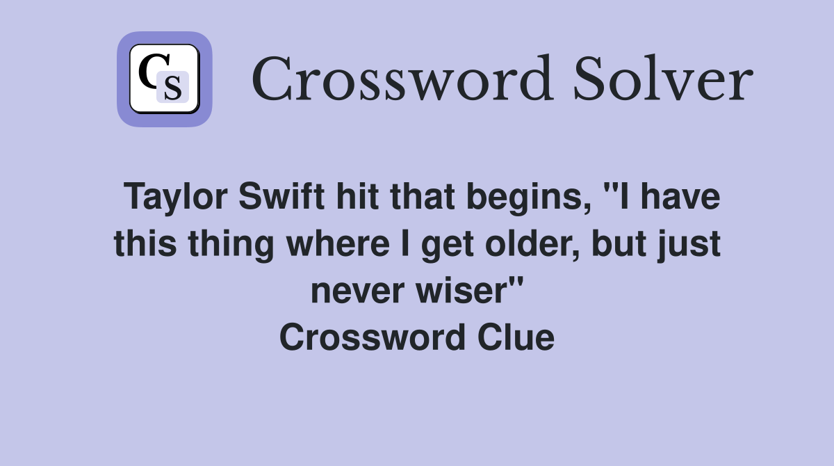 Taylor Swift hit that begins quot I have this thing where I get older but