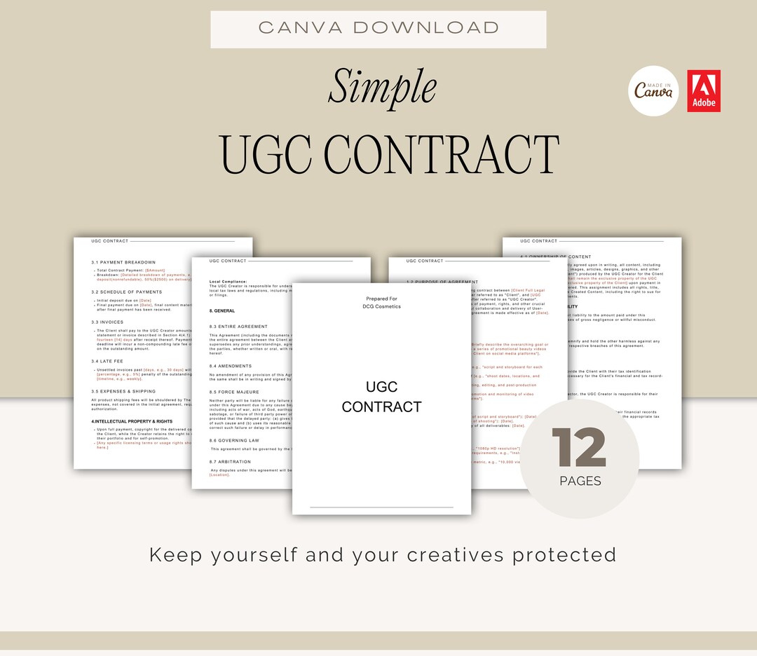 UGC Contract Template Fully Editable UGC Agreement Template Etsy