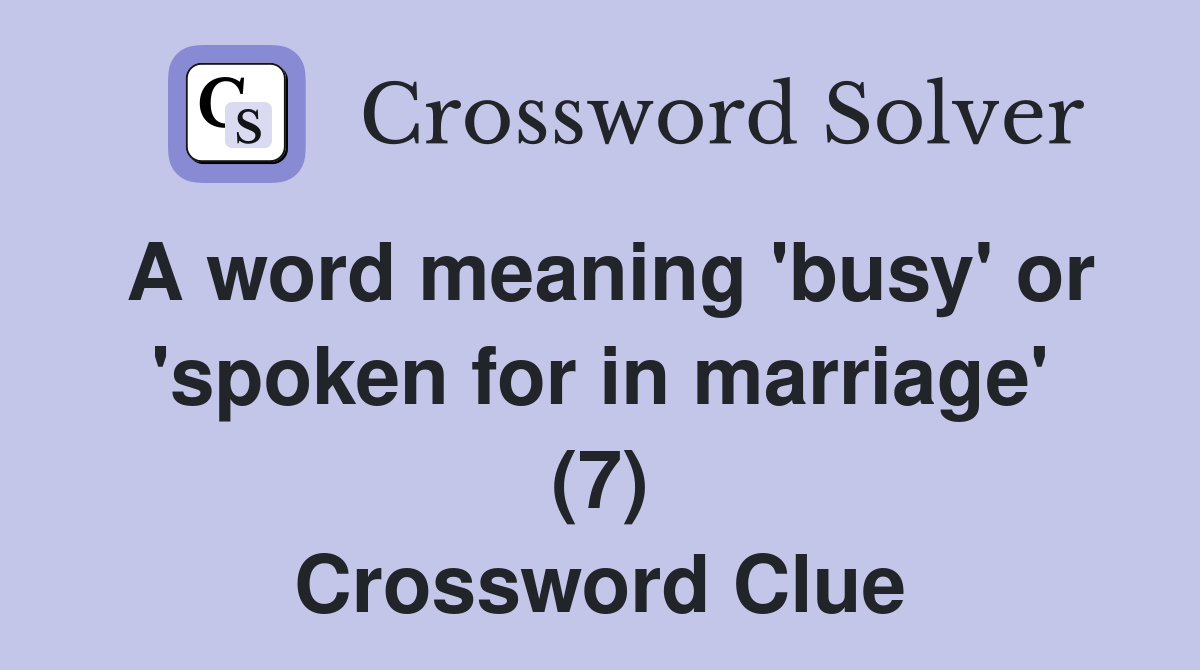 A word meaning #39 busy #39 or #39 spoken for in marriage #39 (7) Crossword Clue