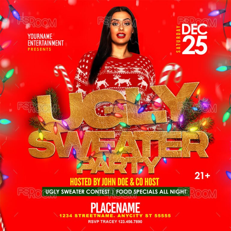 Ugly Sweater Christmas Party Flyer Template PSDRoom com