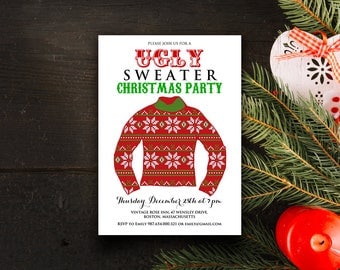 Ugly Christmas Sweater Invite Editable Template Christmas Party