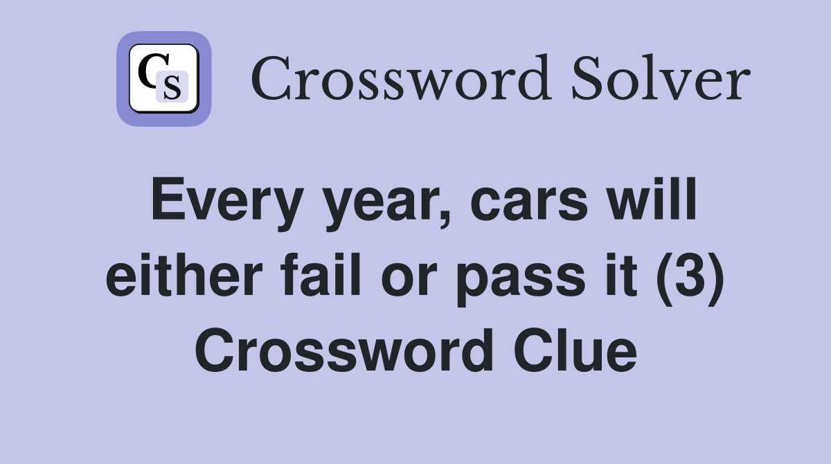 Every year cars will either fail or pass it (3) Crossword Clue