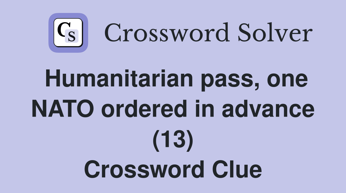 Humanitarian pass one NATO ordered in advance (13) Crossword Clue