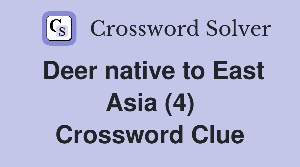 Deer native to East Asia (4) Crossword Clue Answers Crossword Solver