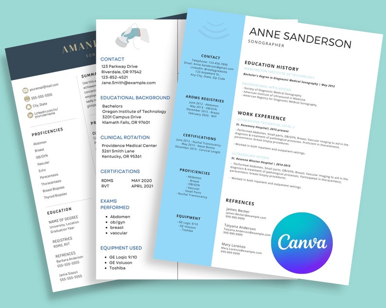 Sonographer Resume Template Ultrasound Tech Resume Etsy