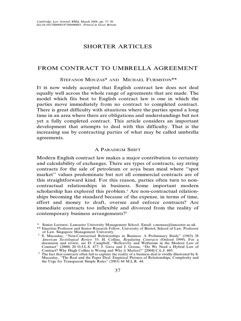 (Importante) From Contract To Umbrella Agreement Stefanos Mouzas and