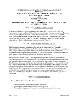 Fillable Online nonreimbursable space act umbrella agreement saa1 36330