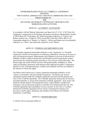 Fillable Online nonreimbursable space act umbrella agreement NASA