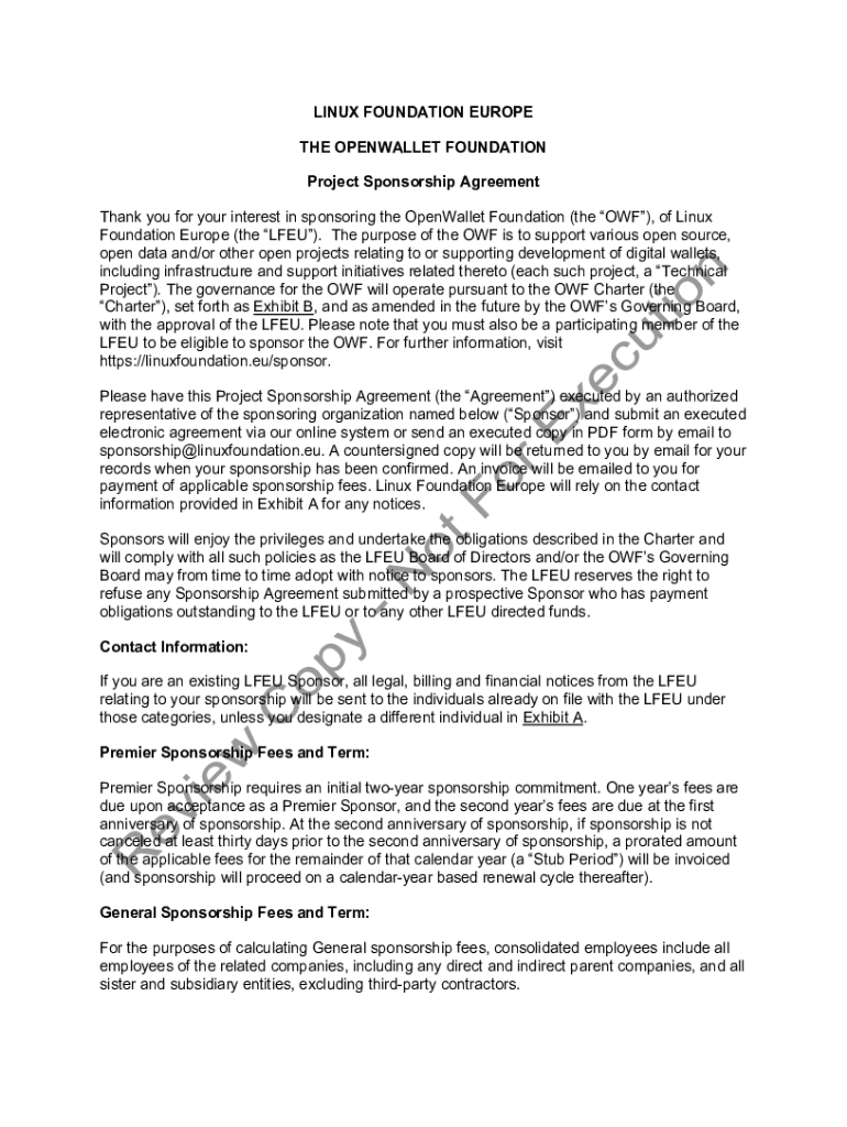 Fillable Online OpenWallet Foundation Charter Sponsorship Agreement