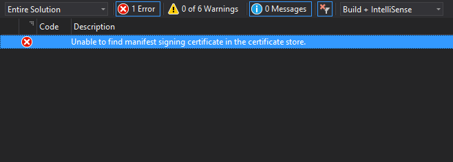 Unable To Find Manifest Signing Certificate In The Certificate Store