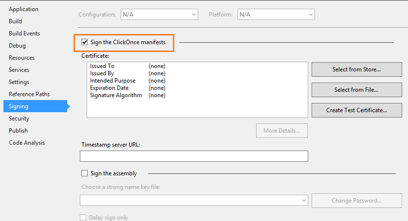 clickonce Verify the signing of manifest and application files