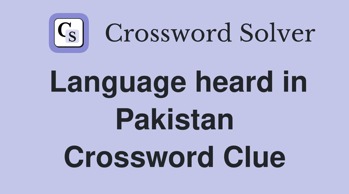 Language heard in Pakistan Crossword Clue Answers Crossword Solver