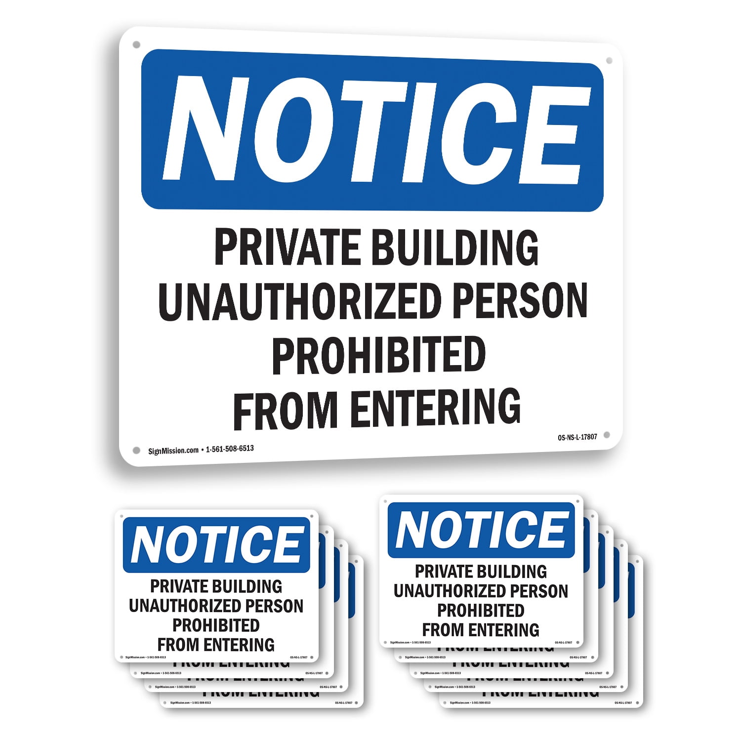 Private Building Unauthorized Persons Prohibited OSHA Notice Aluminum