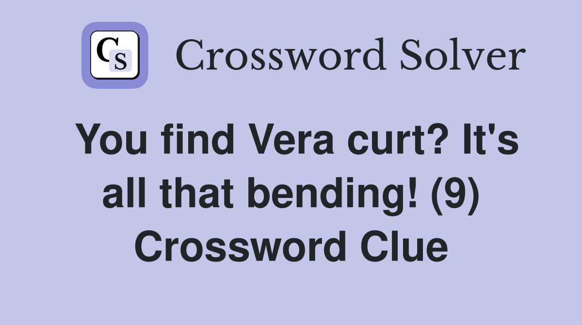 You find Vera curt? It s all that bending (9) Crossword Clue Answers