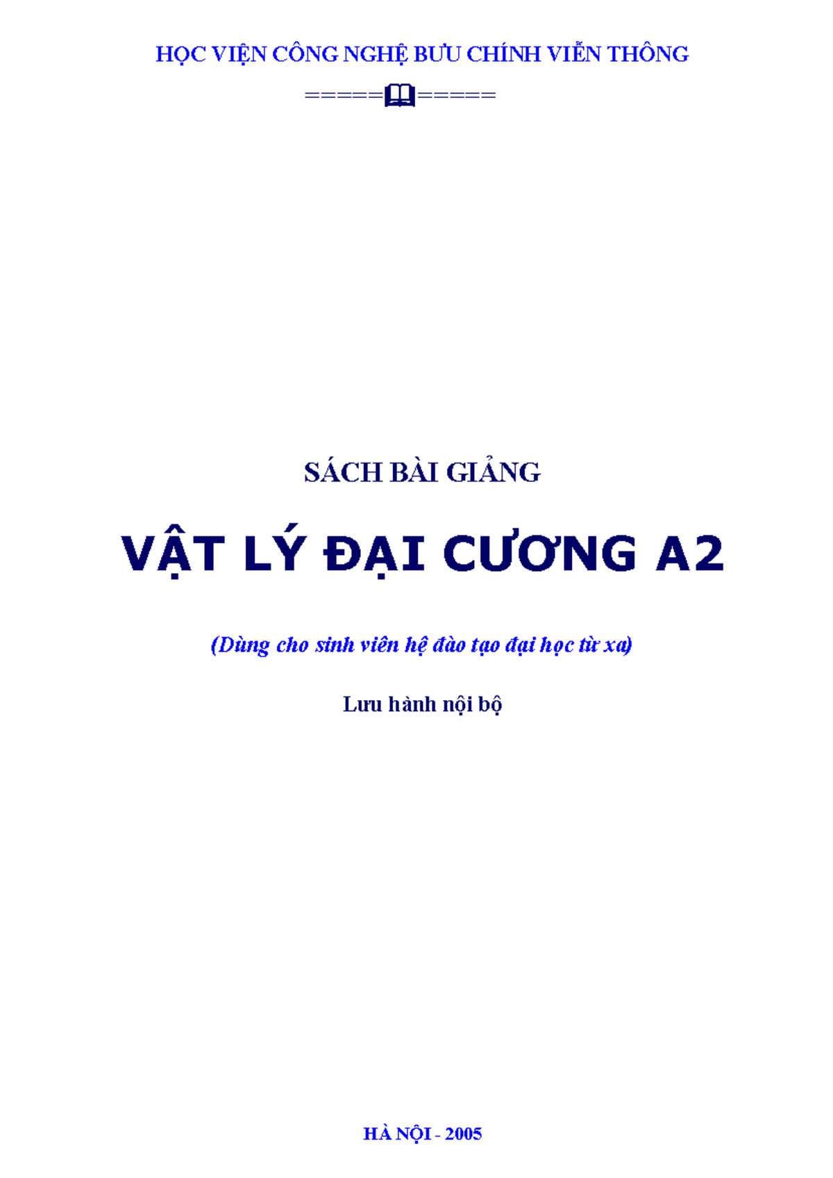 Vat ly dai cuong A2 SÁCH BÀI GIẢNG VẬT LÝ ĐẠI CƯƠNG A (Dùng cho sinh