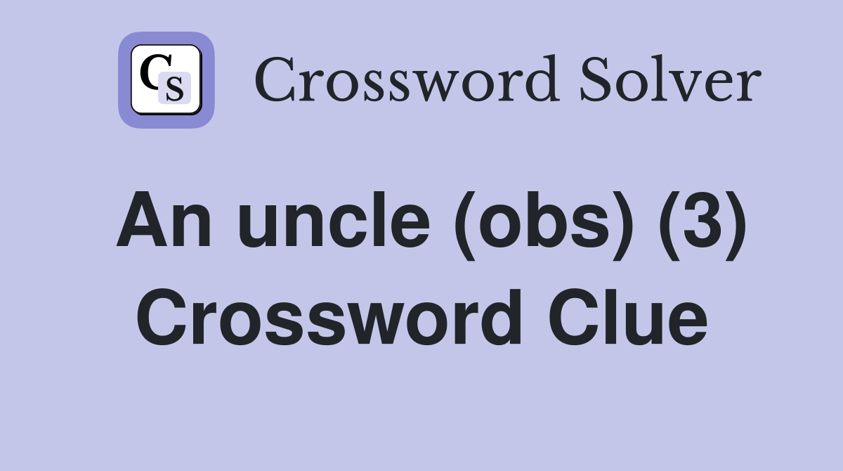 An uncle (obs) (3) Crossword Clue Answers Crossword Solver