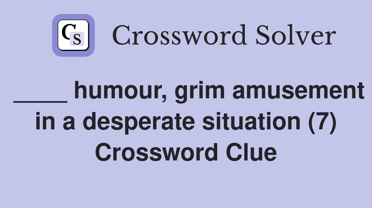 humour grim amusement in a desperate situation (7) Crossword Clue
