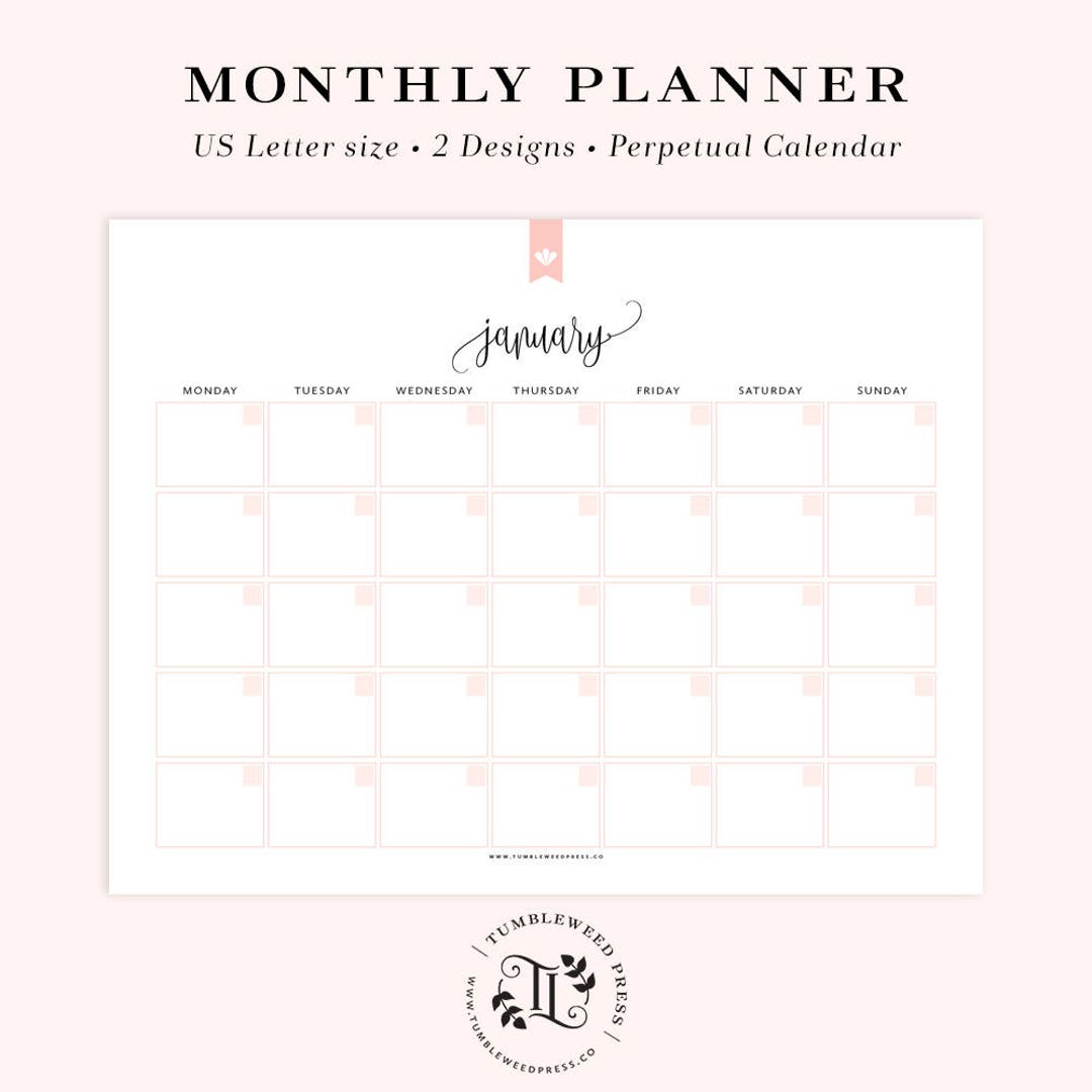 Undated Calendar Undated Monthly Calendar Printable Planner Blank