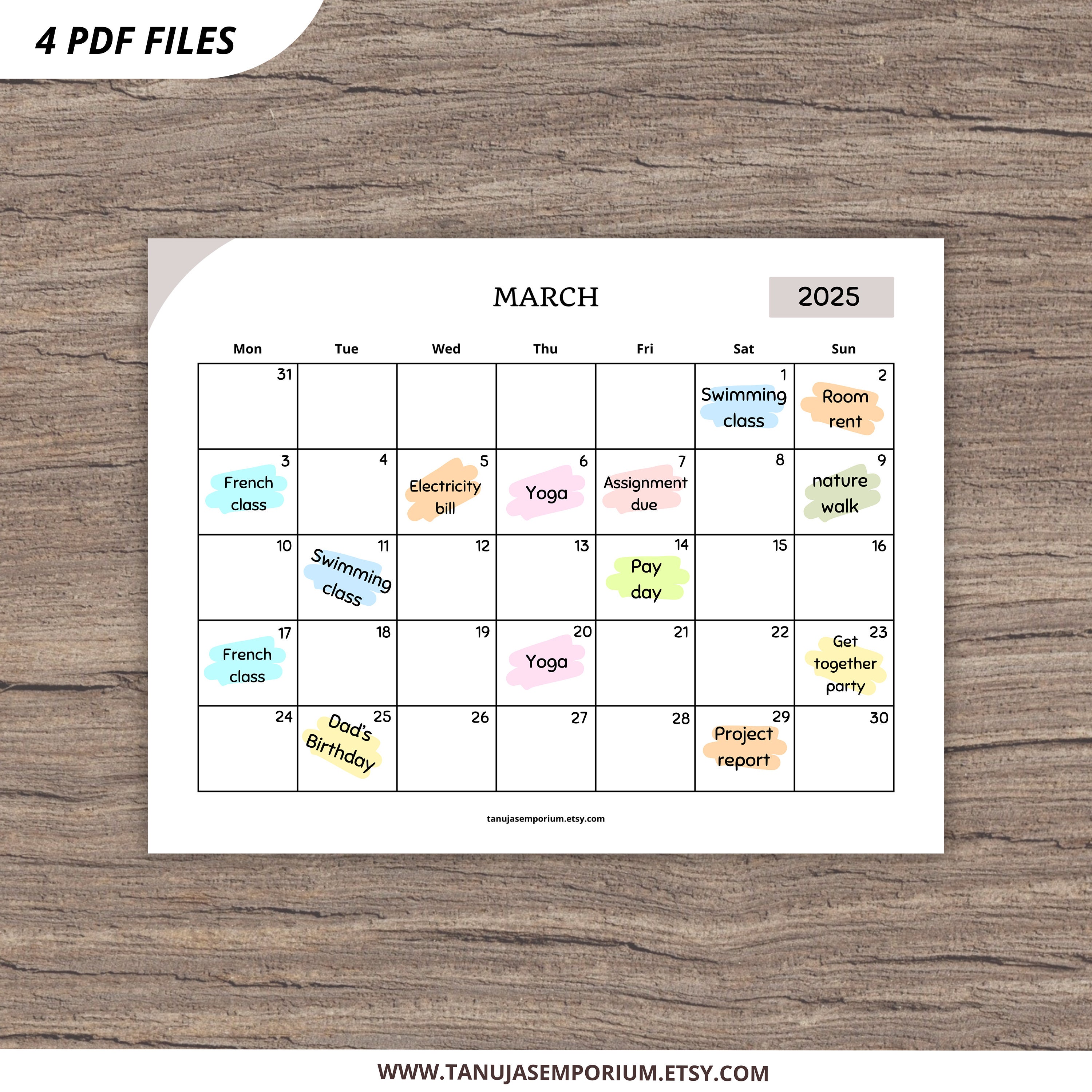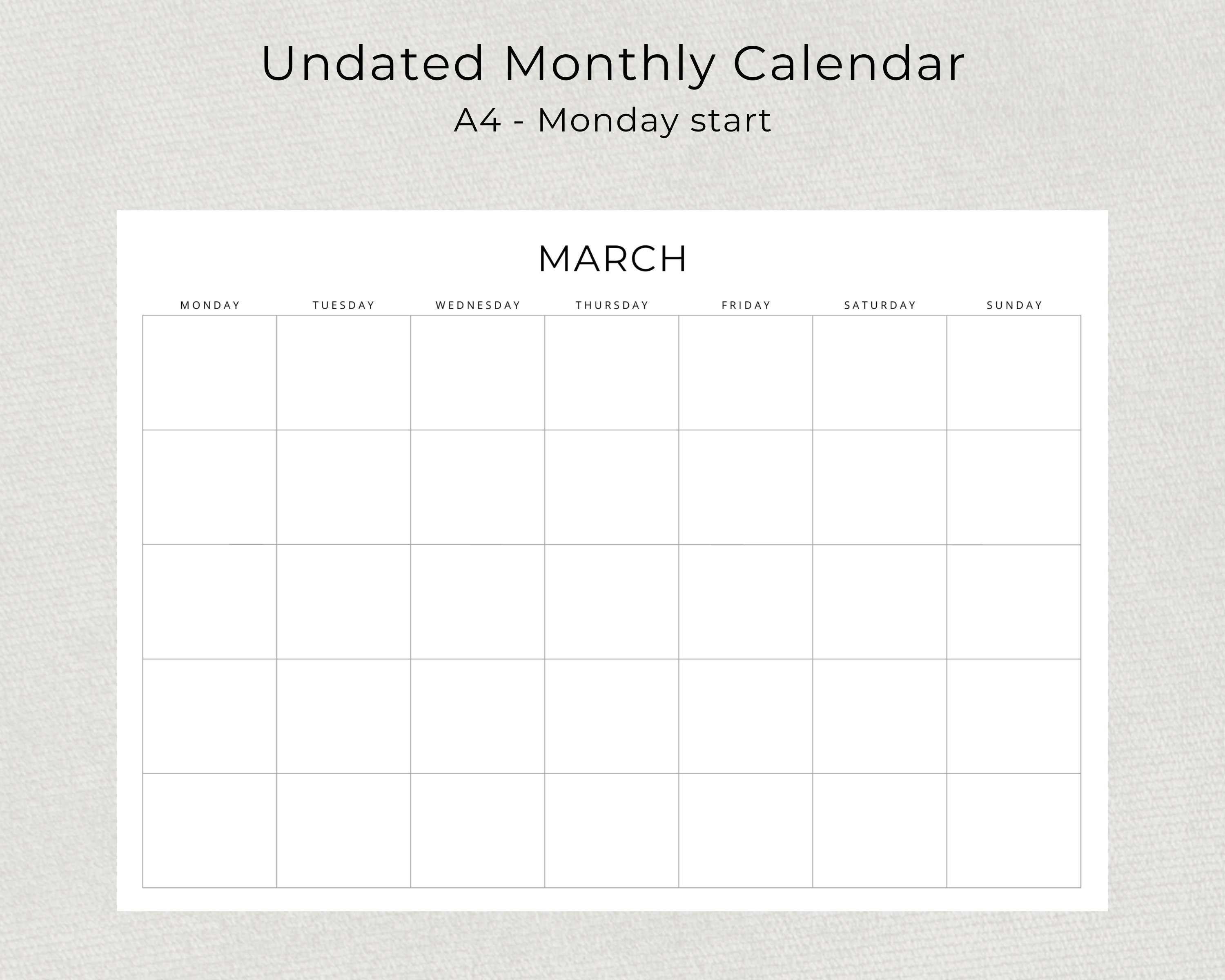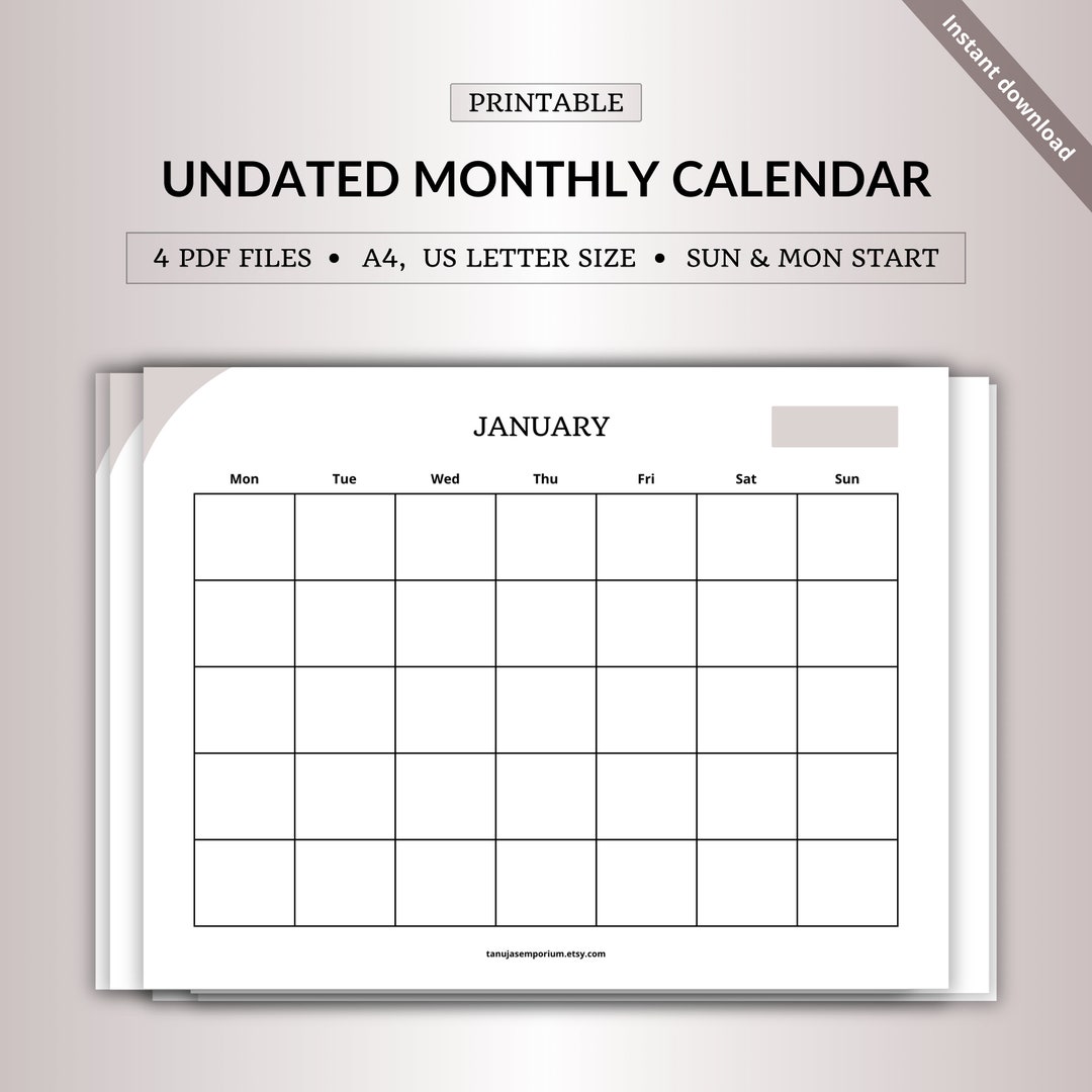 Undated Monthly Calendar Template Etsy