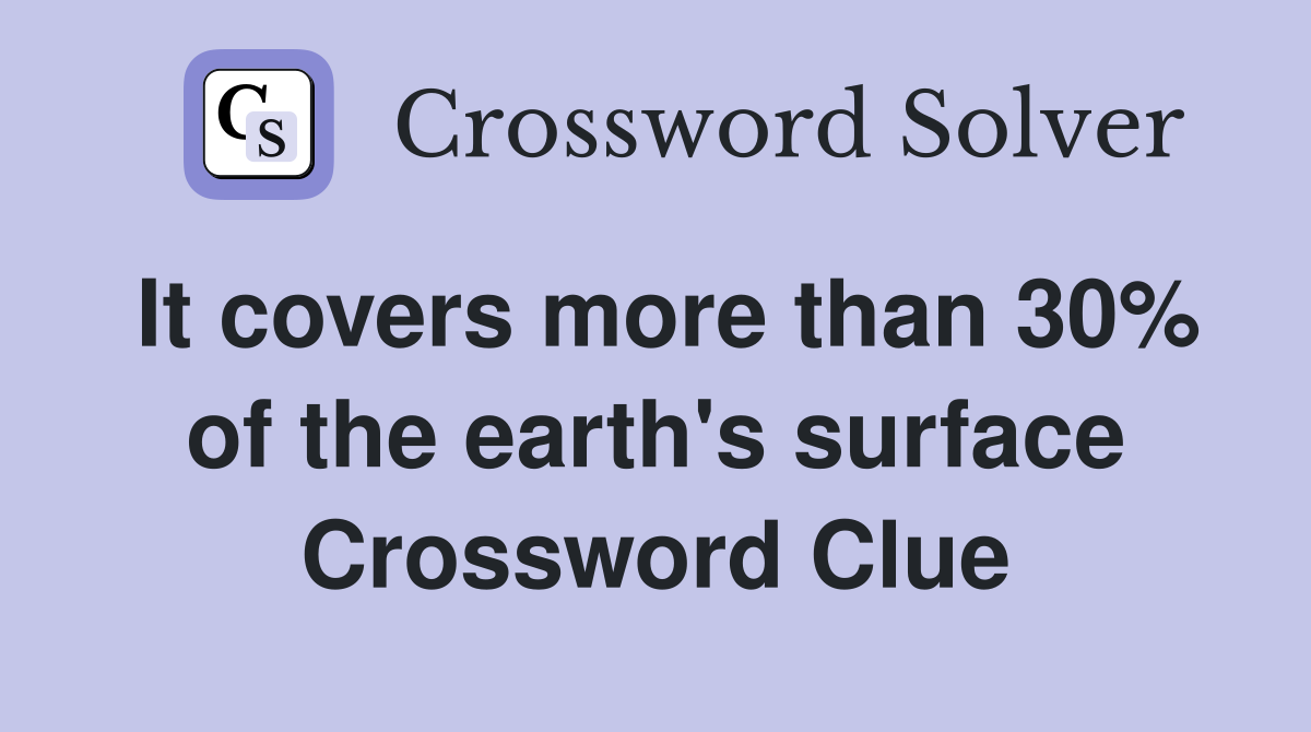 It covers more than 30% of the earth #39 s surface Crossword Clue Answers