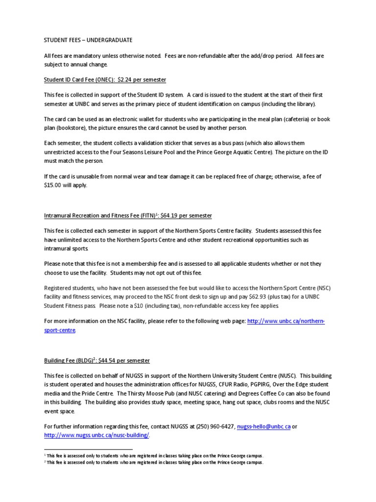 Studentfees Undergrad 6 PDF Fee Course Credit