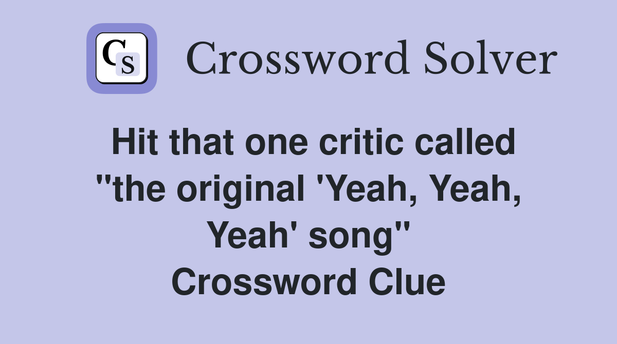 Hit that one critic called quot the original #39 Yeah Yeah Yeah #39 song