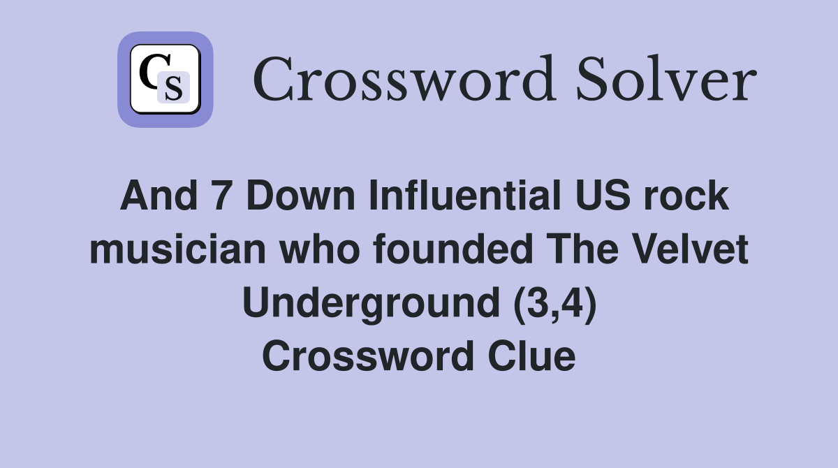 And 7 Down Influential US rock musician who founded The Velvet