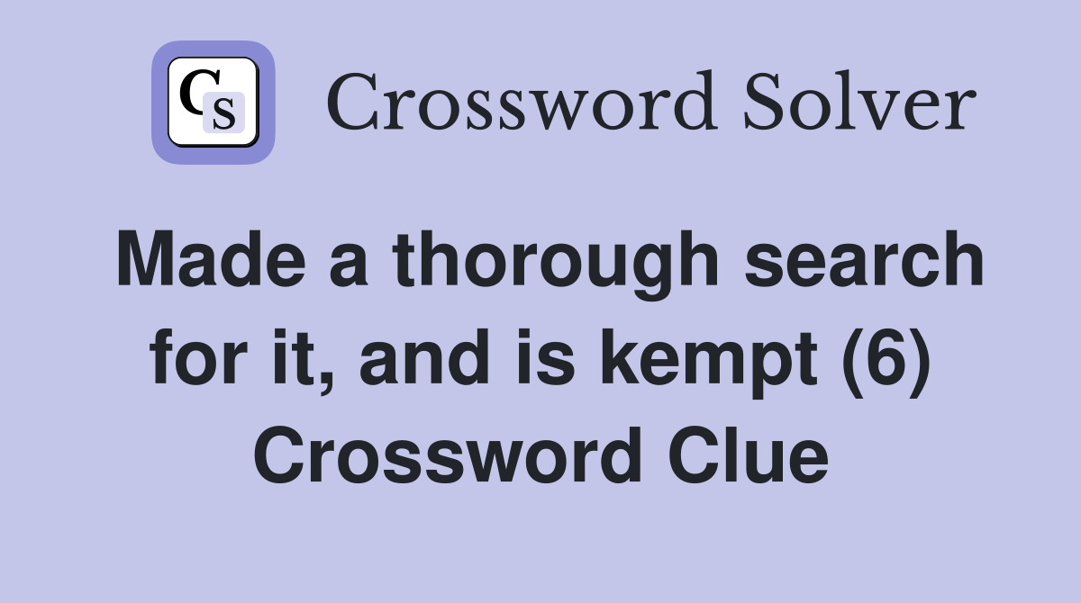 Made a thorough search for it and is kempt (6) Crossword Clue