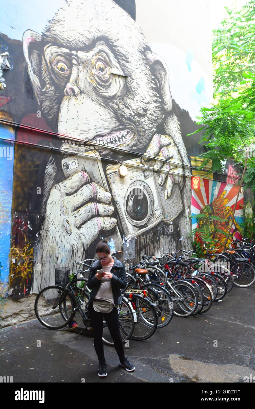 GERMANY BERLIN SCHEUNENVIERTEL MURAL IN AN UNDERGROUND SPOTS OF
