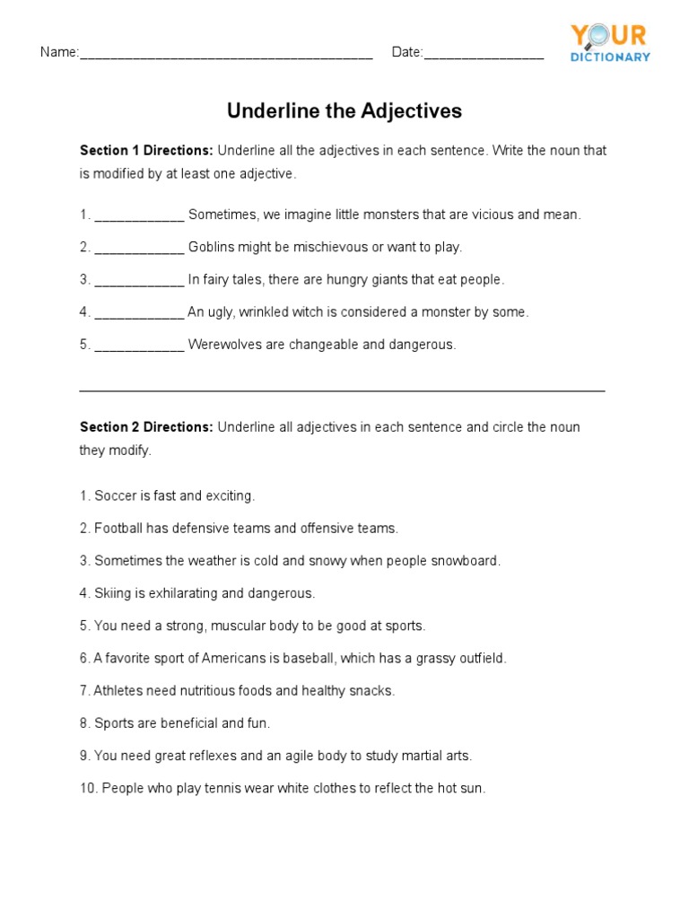 Underline Adjectives Worksheet Adjectiveworksheets net