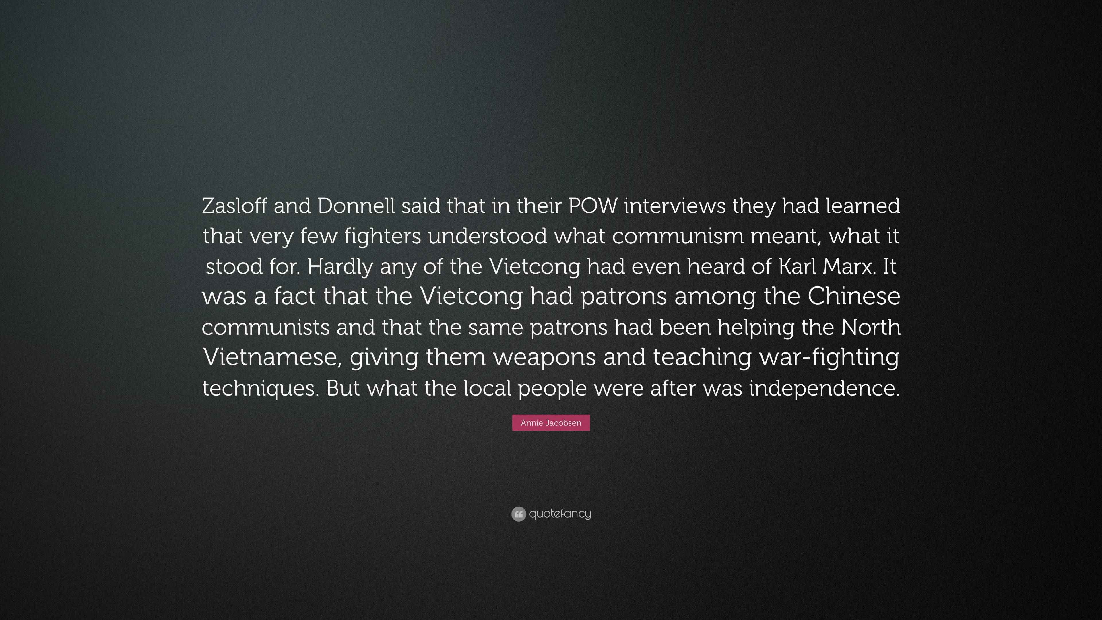 Annie Jacobsen Quote: Zasloff and Donnell said that in their POW
