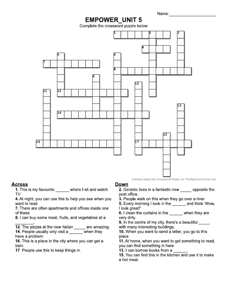 Unit 5 Crosswords PDF